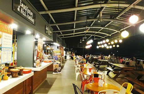 Bersantap di Pasar Kuliner ini akan memberikan sensasi tersendiri. Pengunjung dapat menikmati suasana sejuk karena rumah makannya dibuat semi terbuka. Selain itu, mendengarkan deru aliran Sungai Cikeas menambah keseruan bersantap di sini.