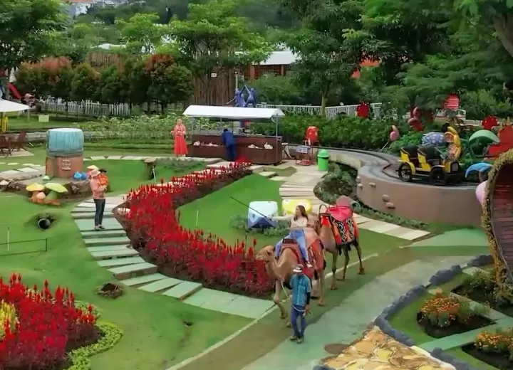 Tidak hanya tanaman, Anda juga bisa menemukan berbagai hewan, bahkan menunggangi unta dan kuda poni. Anda juga berkesempatan memberi makan kelinci. Bagi anak-anak, ada beberapa wahana permainan, seperti kereta api, dan permainan menembak hama dengan air.