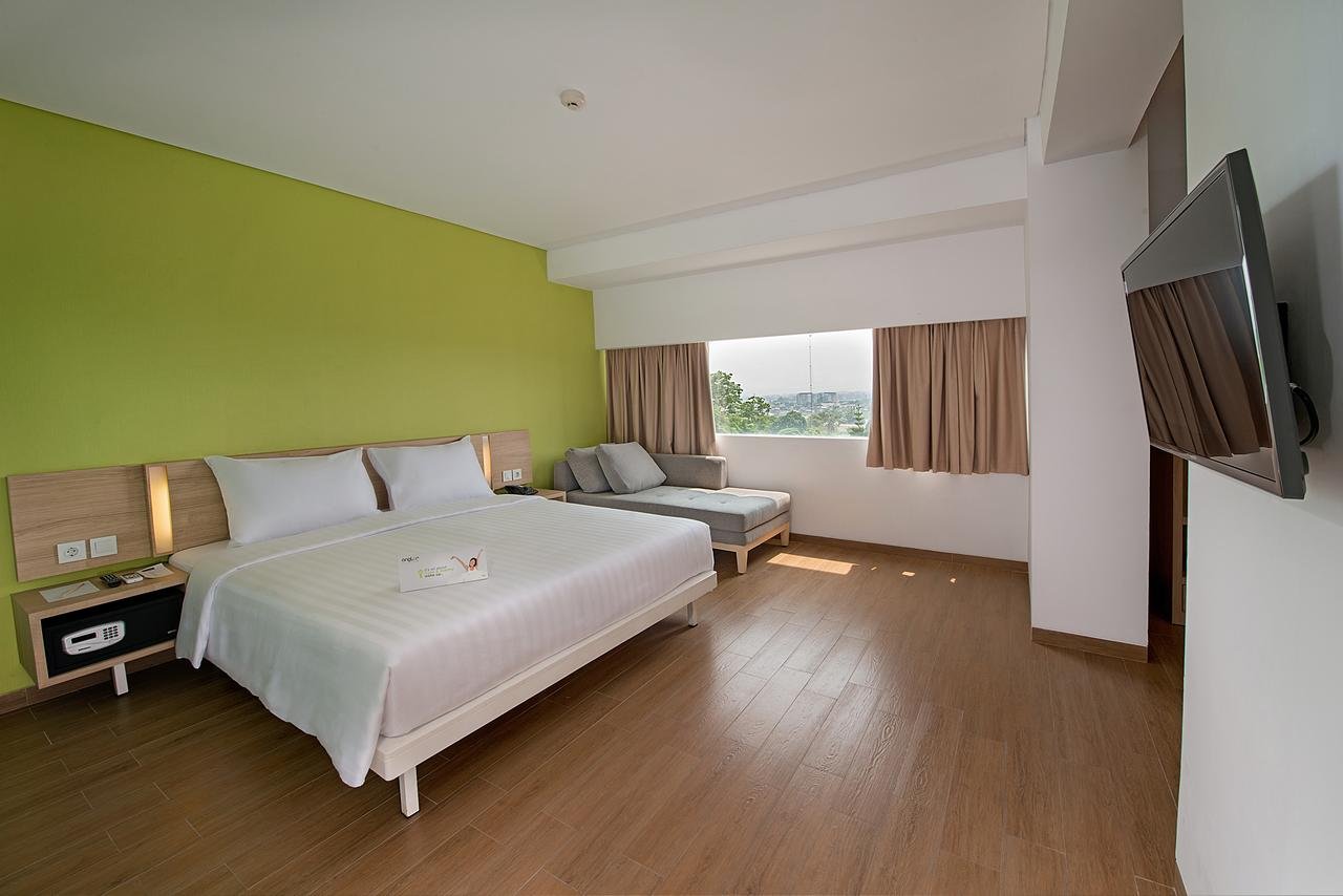 Kamar Hotel Whiz Prime setaraf hotel bintang 3 dimana kamarnya cukup sempit dan minimalis. Didalam kamar terdapat tempat tidur, air mineral,water heater dan beberapa bungkus teh, kopi serta gantungan baju yang cukup sederhana tanpa lemari. Untuk kamar mandi letaknya terpisah dan sangat mepet sekali dengan pintu kamar, kamar mandi shower disisi kanan pintu, sedangkan wc dan wastafel disisi kiri pintu masuk. Meski minimalis, aminities dari hotel tersebut cukup standar, hotelnya juga terkesan bersih. Di hotel ini juga tersedia kolam renang yang berada di lantai paling atas dan sky lounge untuk menikmati malam kota Bogor di lantai atas pula, urusan sarapan tidak usah khawatir. Anda pasti sangat menyukainya, jadi silakan mencoba !