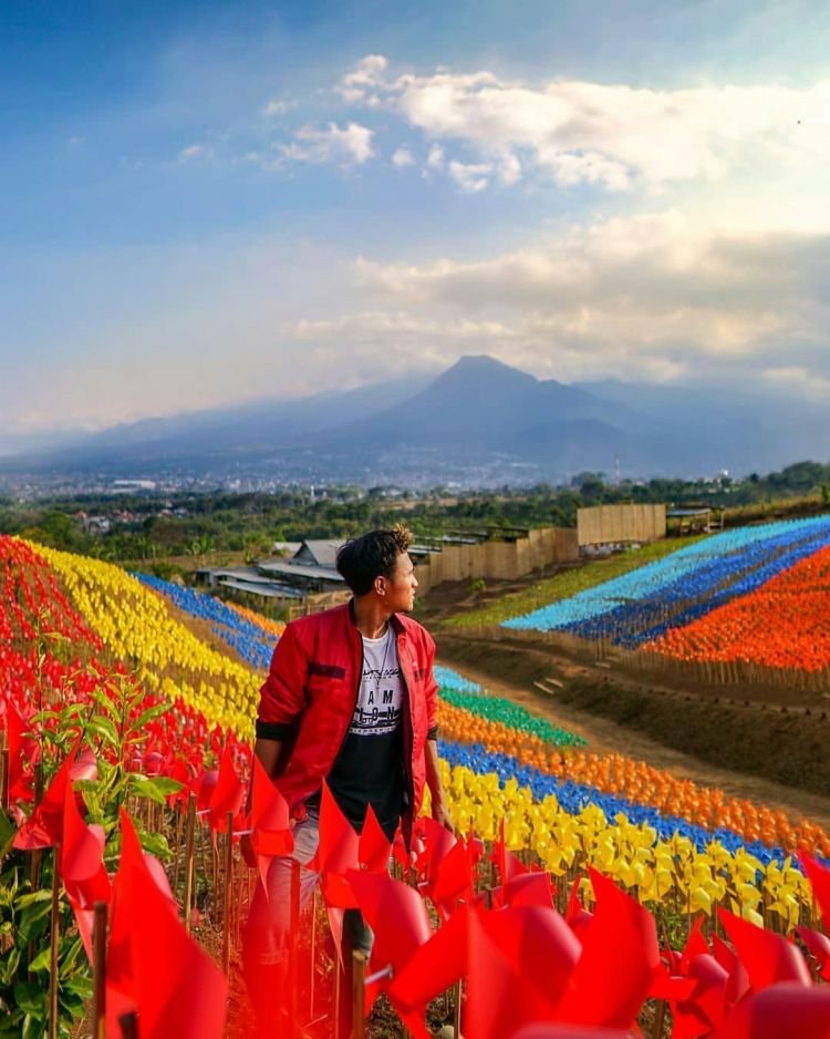Saat memasuki taman wisata, kamu akan disambut langsung oleh ribuan kincir angin berwarna-warni yang menari-nari indah di sela-sela hembusan angin yang bertebaran.