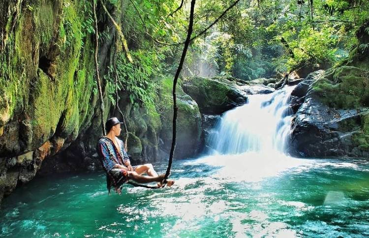 Air terjun dengan ketinggian sekitar 6 meter ini berada di bagian hulu mata air Gunung Salak. Airnya sangat jernih dengan pantulan cahaya hijau kebiruan. Akses menuju lokasi air terjun yang bersahabat dengan jarak dekat juga menjadi nilai tambah.