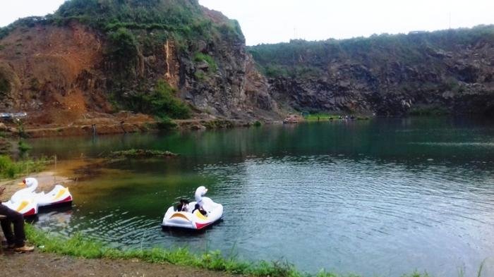 Air danau di sini sangat hijau serta terdapat tebing-tebing bekas penambangan yang cocok untuk dijadikan latar cantik di media sosial. Hanya saja masih kurang penataan dan keamanan karena masih dikelola oleh penduduk lokal.