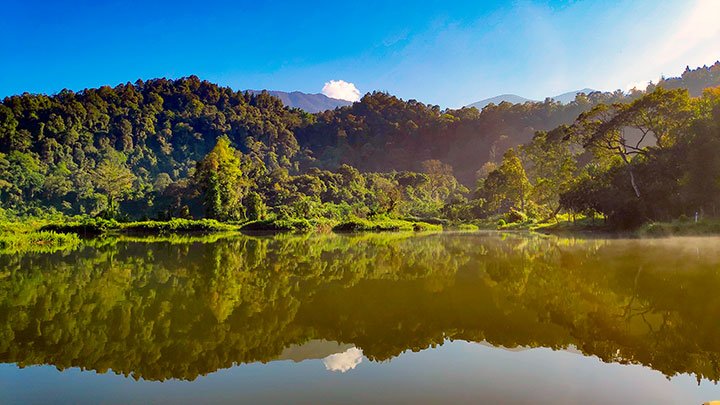 Suasananya terasa begitu asri, sejuk dan tenang. Pantulan awan dan pepohonan di air danau sukses menyegarkan pikiran dan menenangkan hati.
