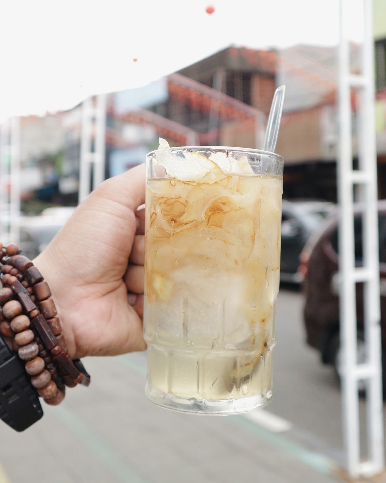 Saat sedang teriknya. Es buah pala bisa menjadi pengusir dahaga yang baik. Tampilannya sederhana saja. Bening tidak warna-warni. Tapi begitu diminum, baru akan terasa sensasi rasanya. Wangi buah pala, berpadu dengan rasa manis dan sedikit asam. Diminum dengan es batu, minuman unik ini akan langsung mengusut dahaga dari kerongkongan.