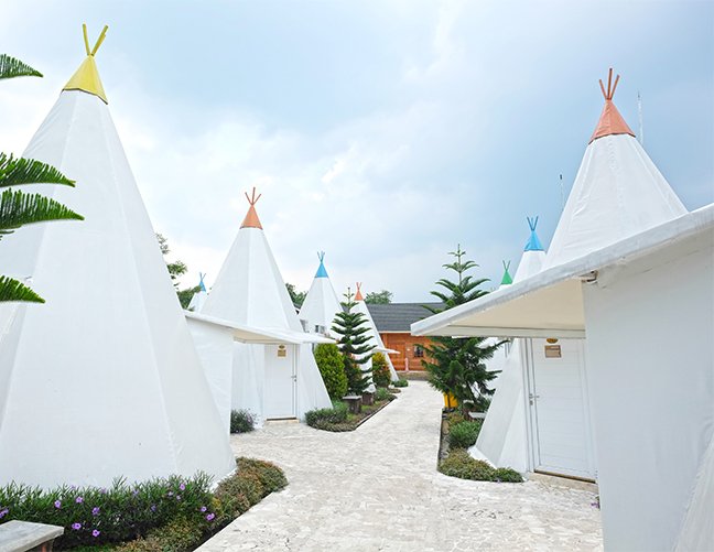 Ini bisa menjadi pilihan tempat glamping di Bogor yang cocok untuk menghabiskan waktu luang di akhir pekan. Beberapa fasilitas yang tersedia seperti kolam renang, restoran, ruang pertemuan, outbound, dan halaman luas plus permainan anak.