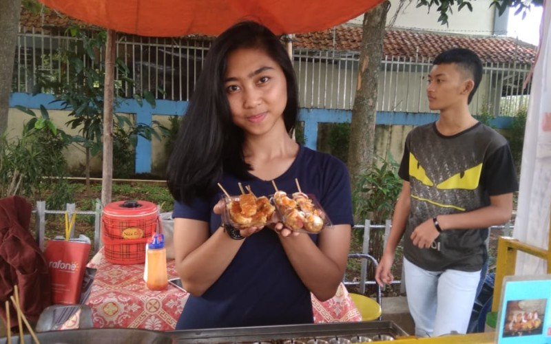 Sate pelangi itu dari adonannya manis kayak kue cubit, ada lima rasa dengan toping coklat, keju. Sate cireng aci digoreng dicelupkan ke telur nanti ditaburi kacang. Semuanya ditusuk kayak sate, Harga yang ditawarkan untuk satu porsi sate bervariatif, namun tak bikin kantong jebol.