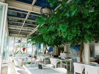 Selain itu, restoran ini juga bisa dibilang mengesankan dari segi interior desainnya. Warna putih yang mendominasi warna ruangan indoor dan dilengkapi dengan beberapa hiasan dinding berukuran kecil, terutama di lantai atas, memberi kesan minimalis dan estetis.