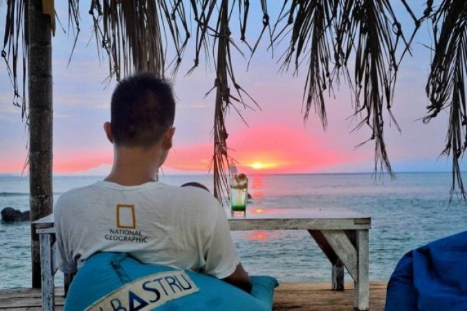 Di tepian Pantai Canti Kalianda, pantulan warna-warni sunset ini memantul di permukaan air laut yang tenang. Ombak-ombak kecil bergelombang dengan lembut yang mampu menyuarakan harmoni alam yang begitu damai dan memikat.