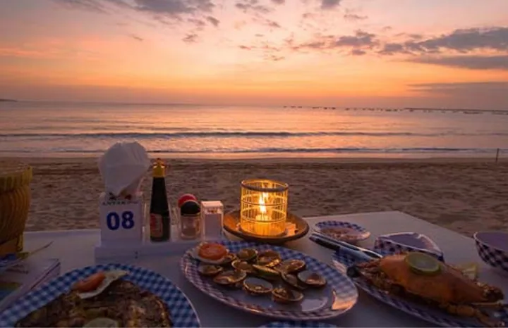 - Restoran Seafood Tepi Pantai: Inilah ikon utama Jimbaran. Terdapat puluhan kafe dan restoran yang menyajikan seafood segar yang meja-mejanya ditata langsung di atas pasir pantai.