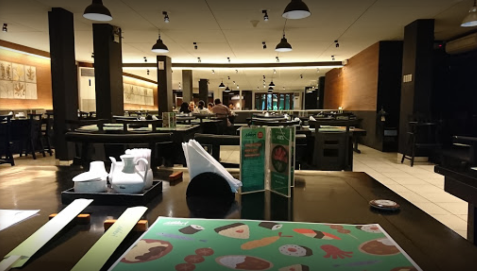 Ruangan resto bergaya minimalis modern. Kursi dan meja kayu berwarna gelap di desain dengan gaya yang simple tapi apik. Pilihan menu mulai dari appetizer dan salad, sushi dan sashimi, yakimono ( barbecue and grill), agemono ( fried food), jyu ( served in box),men rui ( nodles), bento, happy bento ( menu untuk anak-anak),nabemono and curry rice, set menu (menu paket), dessert dan minuman.