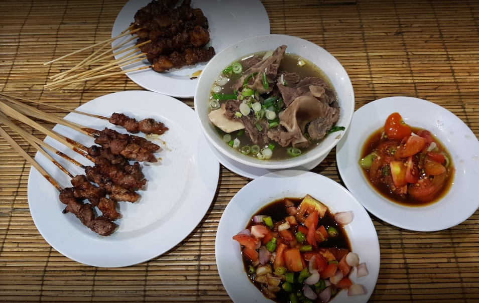 Dengan warna bangunan merah dan hijau, tempat ini sudah nampak dari kejauhan. Di bagian depannya terdapat tempat pembakaran sate dan pastinya selalu ramai oleh para pengunjung.