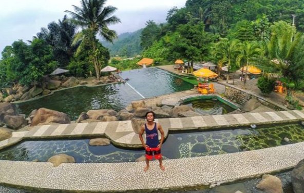 Panorama di sekeliling kolam renang pun tak luput menjadi latar foto wisatawan. Berlatar hijaunya perbukitan dan hamparan sawah memberikan kesan eksotis.