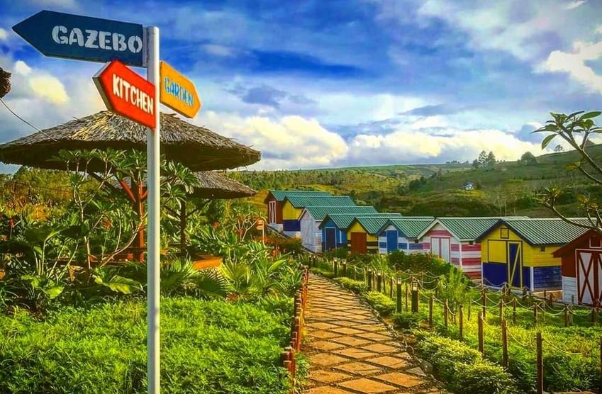 Camping ini dibuat menggunakan gubuk kayu beratapkan jerami yang instagenic. Tenda-tenda tersebut dibuat berjejer dan saling berhadapan. Dalam satu tenda yang masing-masing sudah dilengkapi fasilitas seperti listrik dan toilet dan tempat ini mampu menampung kurang lebih 5 orang.